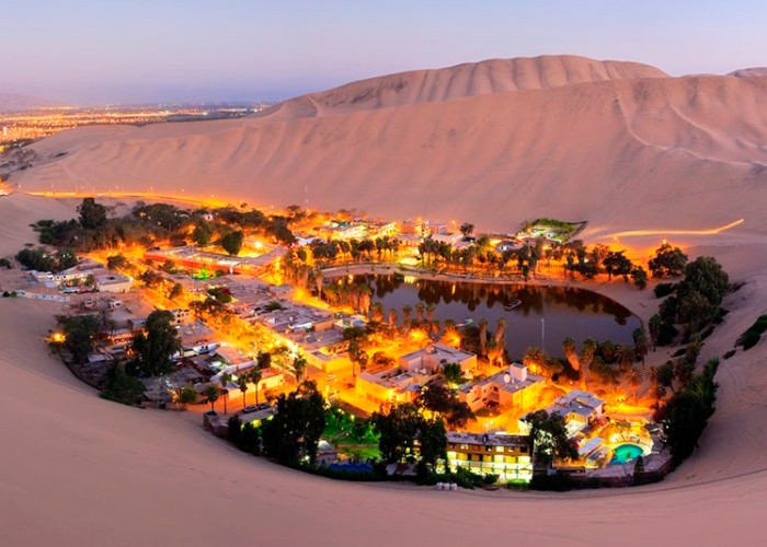 La Huacachina se encuentra cerca a la ciudad de Ica y debes de visitarlo debido a que es un oasis en medio del desierto rodeado de grandes dunas Aquí puedes practicar sandboard y dar paseos en tubulares. Puedes llegar en bus desde Lima hasta ICA luego un taxi hasta Huacachina Te recomendamos llevar una Cámara para que puedas tomar fotos únicas del hermoso atardecer.